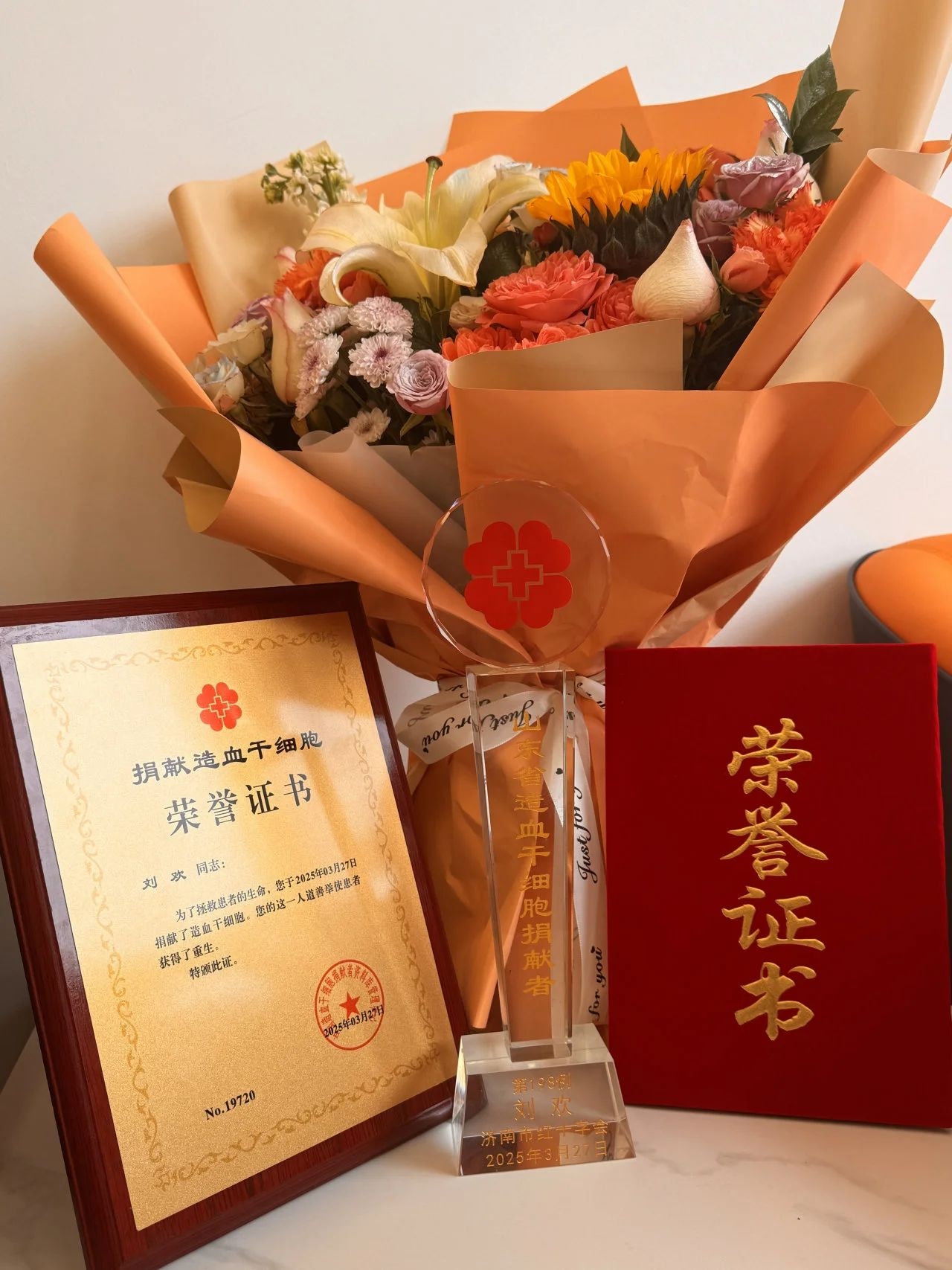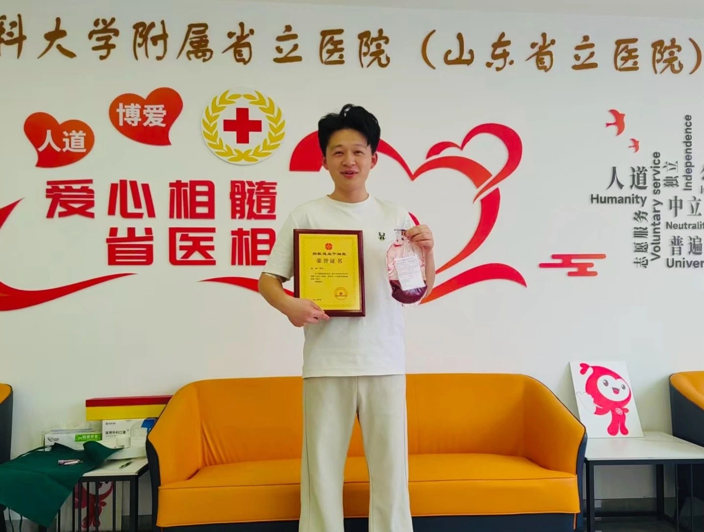 ??18歲高考后,劉歡便積極參與公益事業(yè),9次無(wú)償獻(xiàn)血,累計(jì)獻(xiàn)血量達(dá)3500毫升。2022年,他捐獻(xiàn)了檢測(cè)血樣,將HLA分型相關(guān)資料匯入中國(guó)造血干細(xì)胞捐獻(xiàn)者資料庫(kù)。